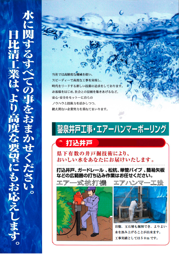 井戸掘削工事/配管工事/上下水本管工事/給排水衛生設備工事